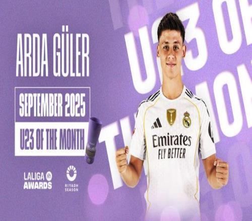 雷速体育9月30日宣 西甲官方发布公告,皇马球员阿尔达·居莱尔被评选为西甲九月份最佳U23球员。
