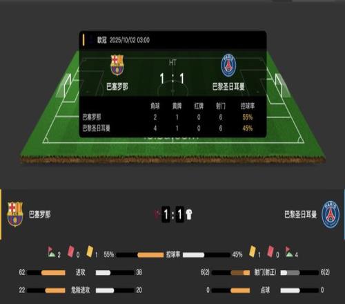 雷速体育10月2日宣 欧冠联赛第2轮,巴萨坐镇主场1-1暂平大巴黎。