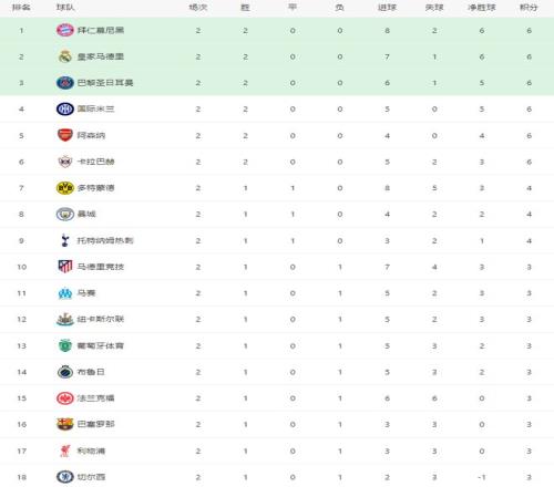 最新积分榜排名,卡拉巴赫积6分,追平拜仁、皇马、巴黎、国米、阿森纳五大豪门,因净胜球落后排名第六位,依然高于多特、曼城、马竞、巴萨、利物浦、切尔西等众多豪门,也是出乎球迷的意料,配得上开局以来的最大黑马身份。