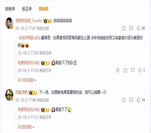 安被进三!国安官微遭自家球迷围攻:若教练席缺狗,我可以捐一只