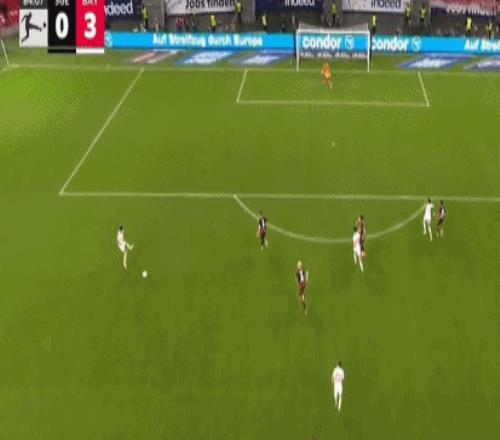 第40分钟,奥利塞右路策动攻势,格纳布里禁区外起脚远射,稍稍高出横梁,拜仁半场2球领先。