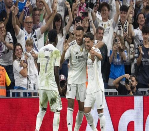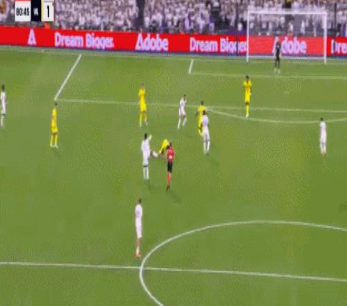 易边再战皇马继续加强进攻,开场仅1分钟,皇马右路压上大范围转移,姆巴佩禁区弧顶处策应头球摆渡顶到左侧,维尼修斯插上拿球,非常轻松的过掉穆里尼奥后杀入禁区,小角度大力抽射,皮球直入球门近端死角,皇马1:0打破僵局。第68分钟,维尼修斯又是左路强攻,这次他禁区边上突破马林的防守往禁区里冲,马林推了一下,维尼修斯应声倒地,主裁吹罚了点球。维尼修斯操刀主罚一蹴而就梅开二度,皇马2:0领先。