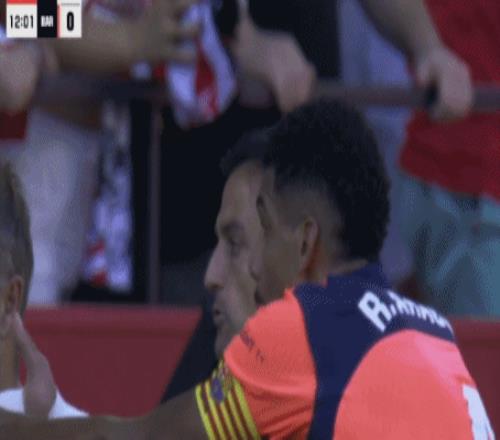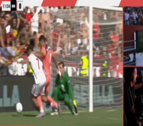 在2025-26赛季西甲第8轮,巴塞罗那客场对阵塞维利亚。阿劳霍绊人犯规,主裁判回看慢镜头之后判罚点球。