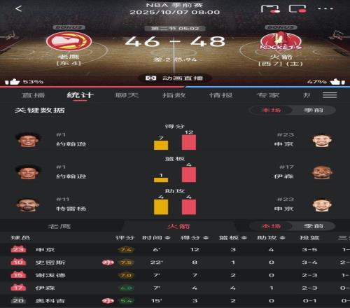 有细心的雷速老哥也许发现了,NBA季前赛出现多场比赛数据和实际转播画面不符的情况,例如今日老鹰对阵火箭的比赛。