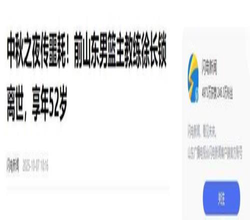 前CBA山东男篮主教练徐长锁因病离世,年仅52岁,消息一出,无数球迷与业内人士为之动容。