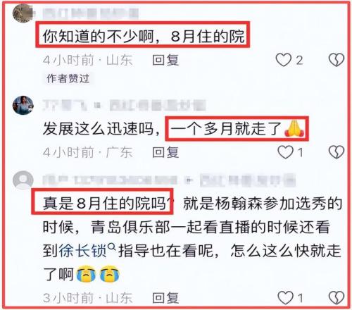 刚刚结束训练的杨瀚森第一时间得知噩耗,随即在社交媒体发文悼念:
