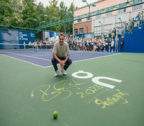 在10月8日的On昂跑“致敬每一场”活动上,品牌联合创业者、瑞士网球天王罗杰·费德勒就与刘运智同框。在On昂跑与刘运智团队共同翻新升级的徐汇区第一少年业余体育学校网球场上,费德勒与刘运智一起为球场揭幕,费天王更是在场上留下了充满纪念意义的球印和签名。