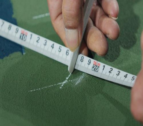 不久前,刘运智的膝盖受伤,走路吃力了一点,但她还是亲自来到球场完成整个测试过程。测试开始后,她拿着尺子来回比量——球场的地面有没有铺平,面层有没有鼓包、脱皮,还有弹跳等,每一个细节都不能放过。
