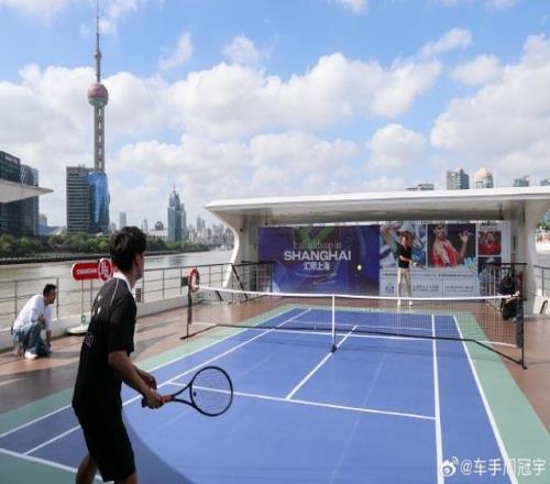 和费德勒打水上网球,周冠宇发文:和费天王在黄浦江上切磋