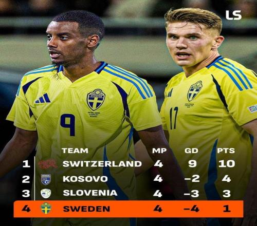 在北京时间10月14日凌晨结束的世界杯欧洲区预选赛B组一场焦点战中,瑞典在主场0-1不敌科索沃,开局4轮不胜并且遭遇3连败,提前无缘直通2026年美加墨世界杯。
