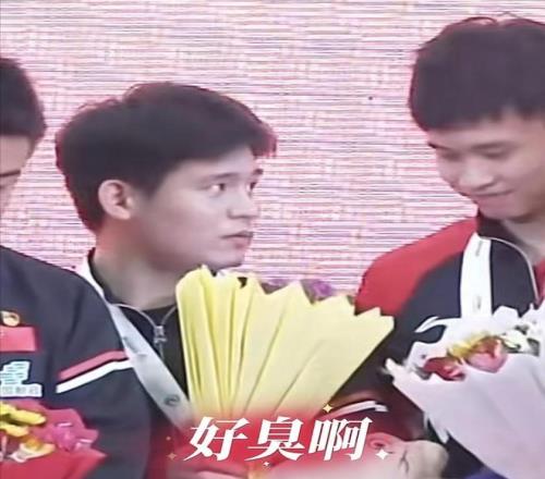 但这还没结束,林诗栋的好奇心太大了,他又去闻了闻吉祥物,他再次被臭到表情失控。