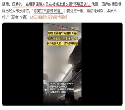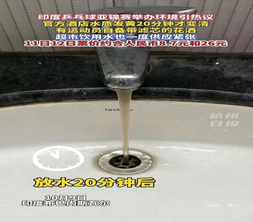 入住印度的酒店之后,国乒的一名后勤保障人员就忍不住吐槽环境恶劣,还说感觉印度的空气辣眼睛。