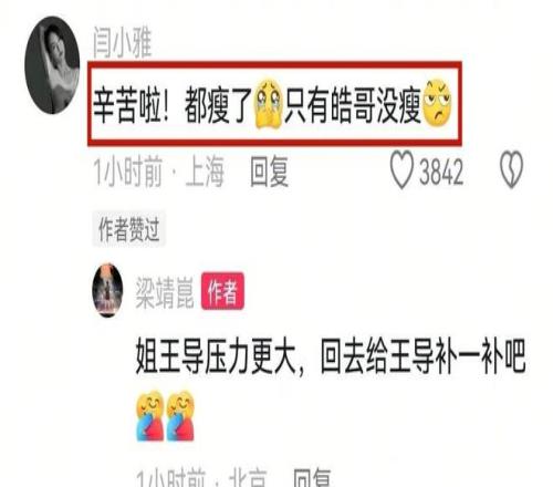 当看到国乒队员赛后发文时,小雅在梁靖崑发布的动态下留言:辛苦了,都瘦了,只有皓哥没瘦。