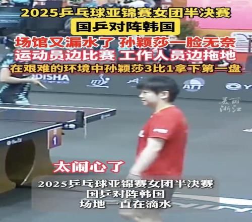 比如孙颖莎比赛时,场馆竟然漏水了。
