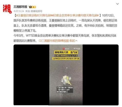 比如王曼昱在训练时,竟然有鸟屎从天上掉落。