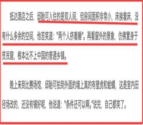 但国乒运动员在印度住的双床房就不一般了,不仅房间小,连两张床都是紧紧挨在一起,国乒运动员只能挤在一起睡。
