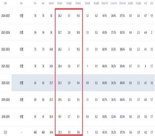 近三个赛季,特雷杨场均26+11两双进账,个人数据依然相当劲爆,然而带队成绩却直线下滑,老鹰已连续两个赛季未能杀进季后赛。正因近年来战绩糟糕,老鹰管理层对特雷杨的带队能力产生了动摇,不再和以往那般有着绝对信心,自然而然不会轻易向他提供全额顶薪合同。