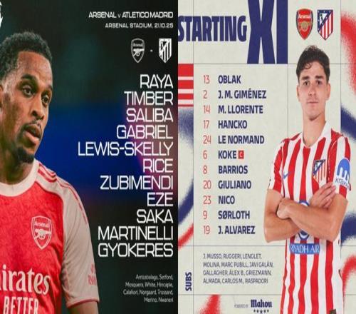 此战双方尽可能派上了全主力,哲凯赖什、萨卡、埃泽和马丁内利组成阿森纳进攻群。瑟洛特和阿尔瓦雷斯搭档马竞双前锋,两侧是冈萨雷斯和朱利亚诺-西蒙尼。