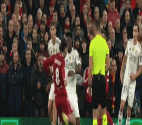 第31分钟,索博斯洛伊外围打门击中了琼阿梅尼手臂,VAR介入之后,主裁判没有判罚点球,皇马再次逃过一劫。