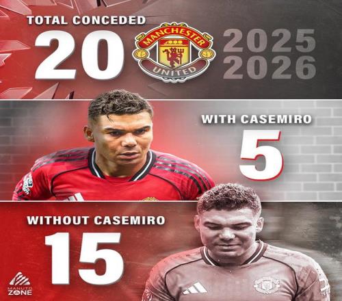 最近两场比赛,曼联都在卡塞米罗离场时1-0领先,但失去他之后被对手连进两球。这是对「胖虎」本人的赞扬,却是对球队其他球员的讽刺。没有卡塞米罗,曼联怎么办,鲁本·阿莫林和球员都不知道。