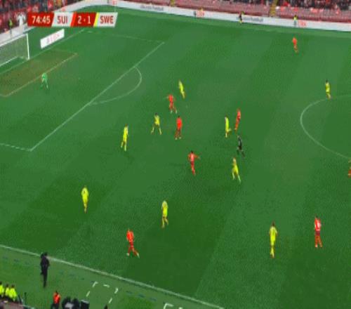第75分钟,巴尔加斯直塞,恩多耶低射破门再下一城,瑞士将比分扩大至3-1。