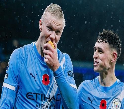 哈兰德连续5个英超客场破门,在曼城队史仅次于阿圭罗