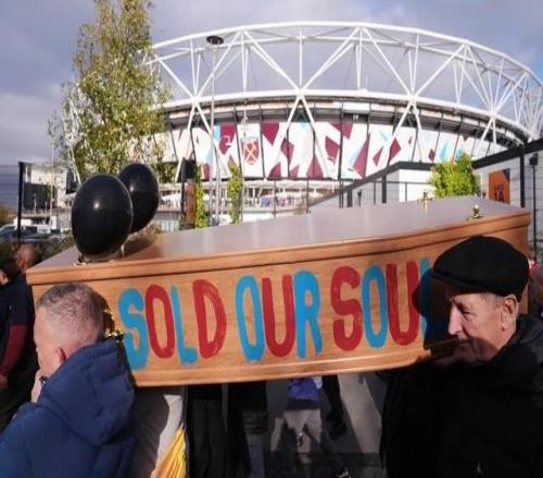 太阳报:西汉姆球迷抬着棺材游行,抗议俱乐部管理层