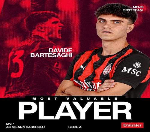 在昨天晚上进行的意甲第15轮比赛中,米兰主场2-2战平萨索洛,其中巴尔泰萨吉完成梅开二度,赛后,他被米兰官方评为本场比赛队内最佳球员。