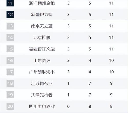 江苏、天津和四川排在倒数,他们本赛季基本上没什么好期待的了。