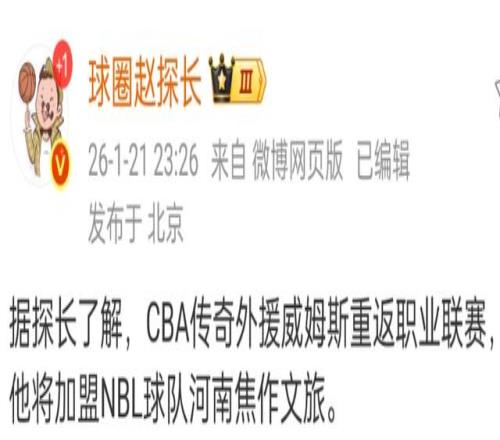 目前焦作男篮排名第九,为了冲击季后赛,李根邀请威姆斯加盟球队,虽然目标焦作男篮有4名外援,但球队后续还会进行调整,包括威姆斯加盟之后,李根也在寻找更合适的外援。